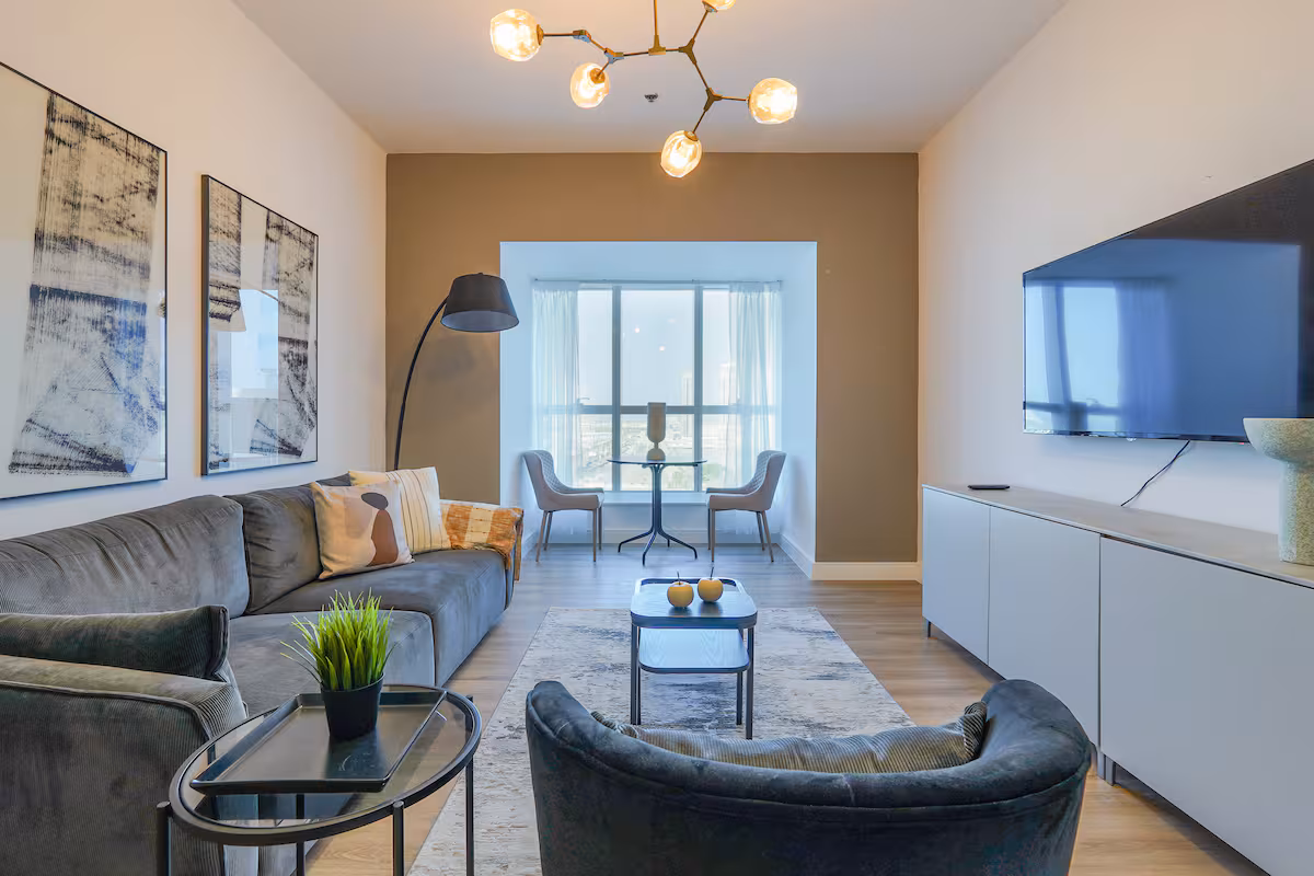 Nestled in Dubai Marina, this 1-BRapartment has an amazing view of Dubai Harbor and Bluewaters.