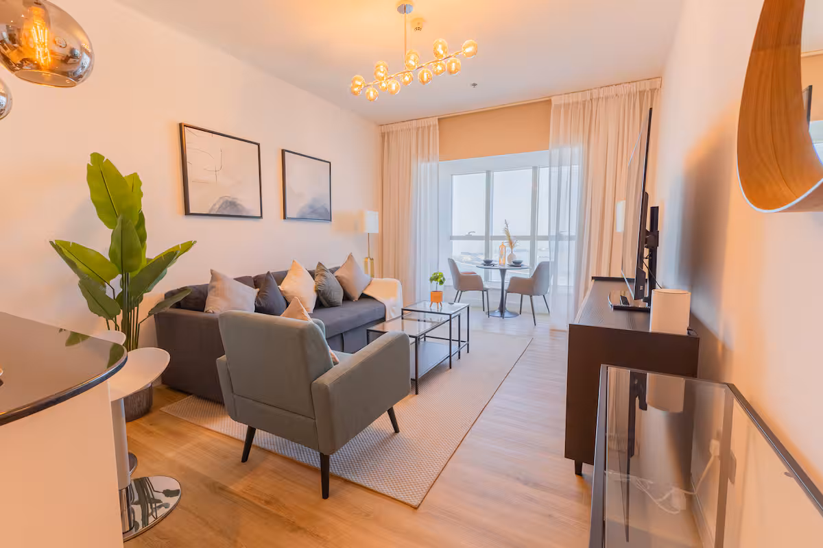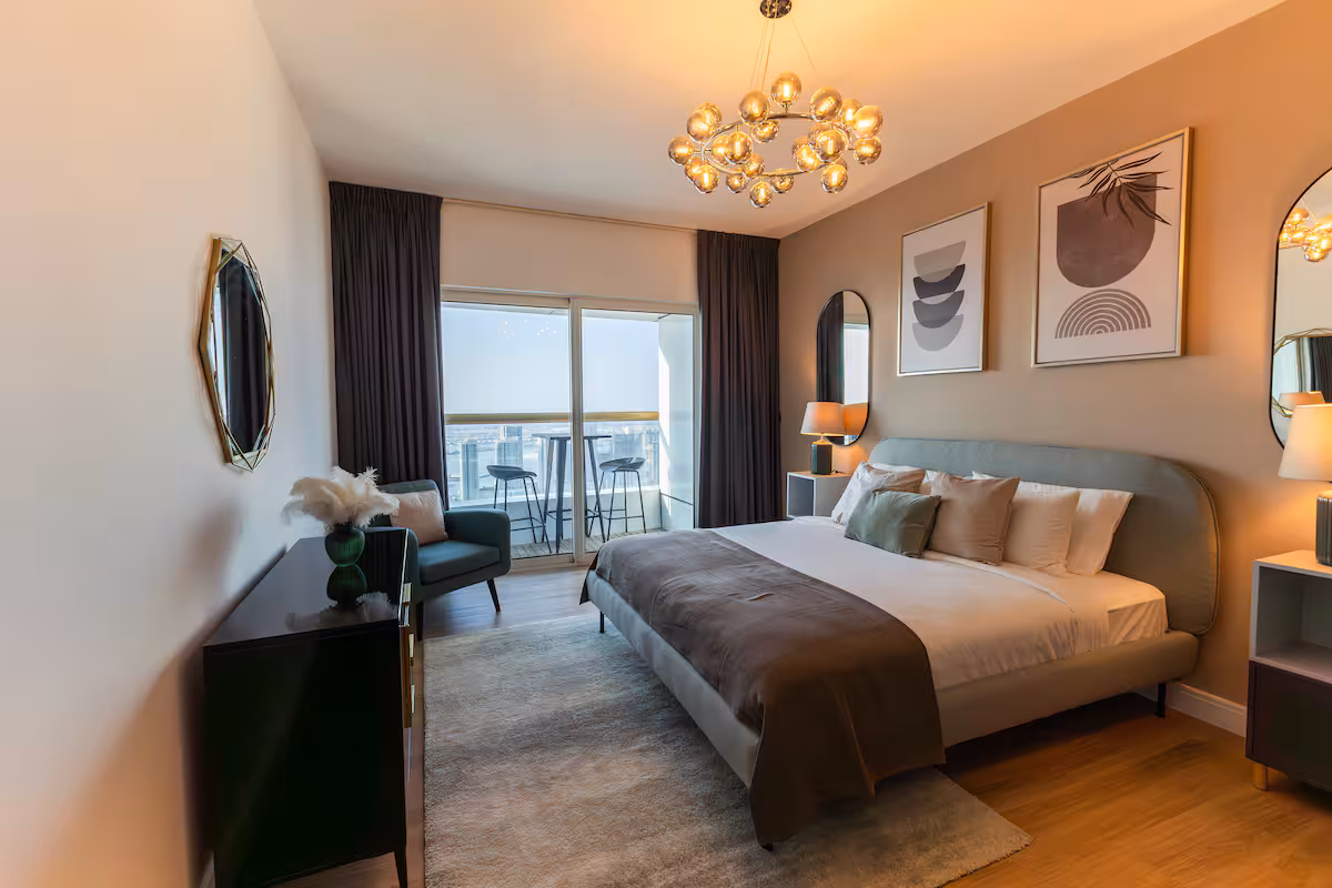 Centrally located in Dubai Marina, this 1-bedroom apartment has an amazing and picturesque view of Dubai Harbor and Bluewaters.