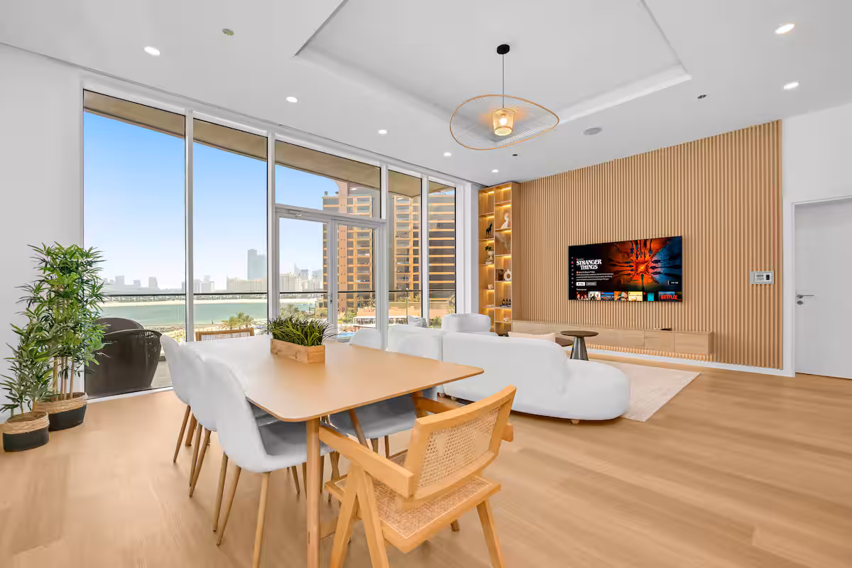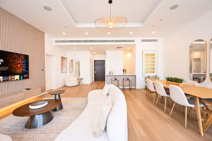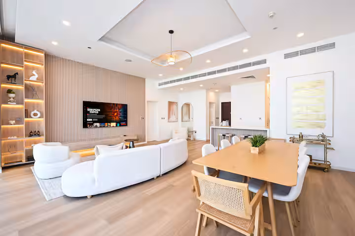 🛋️ Bright, open-plan living and dining area with elegant furnishings