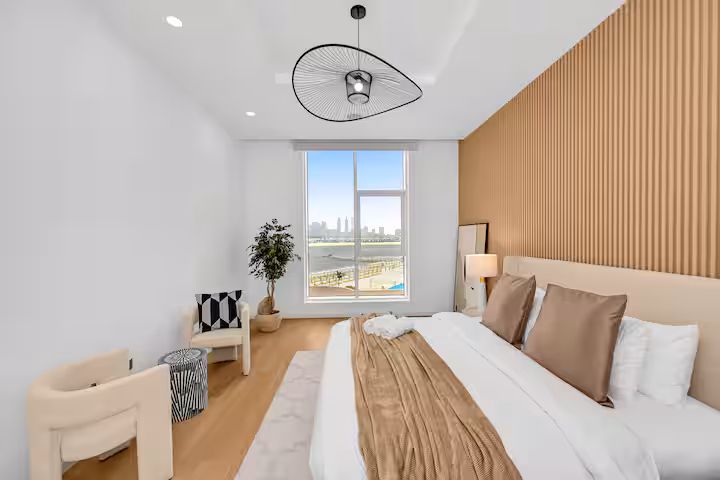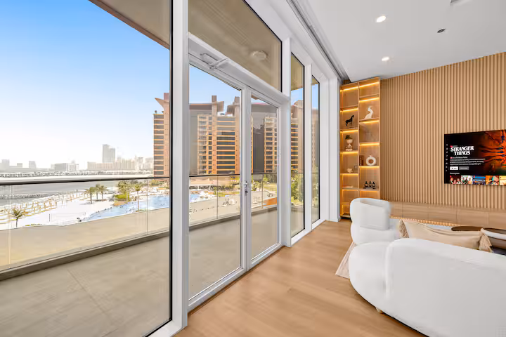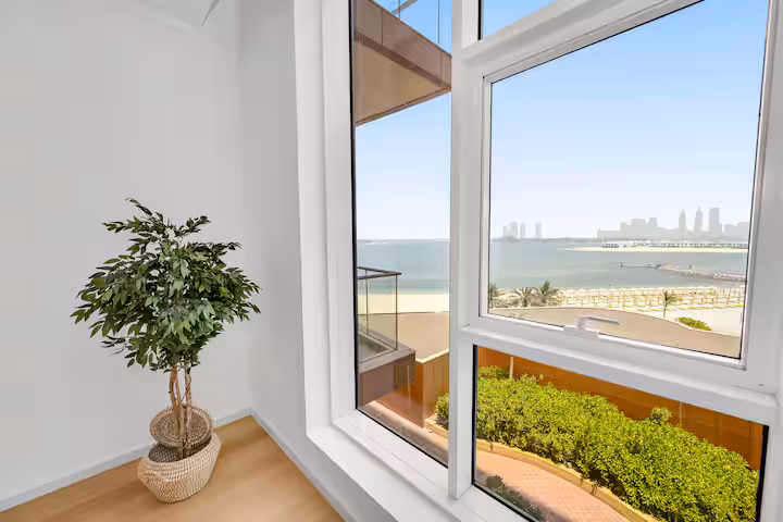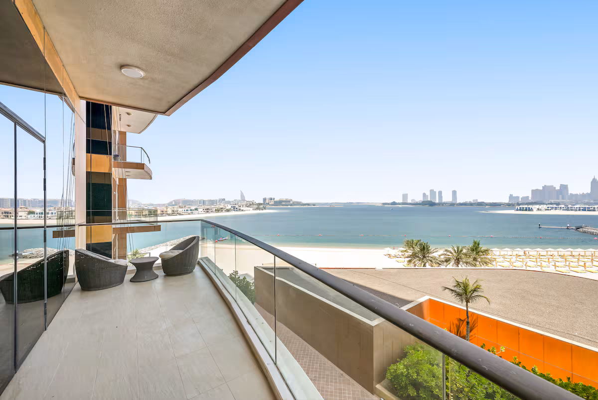 Enjoy uninterrupted sea views from this luxury apartment in Tiara Residence, Palm Jumeirah.