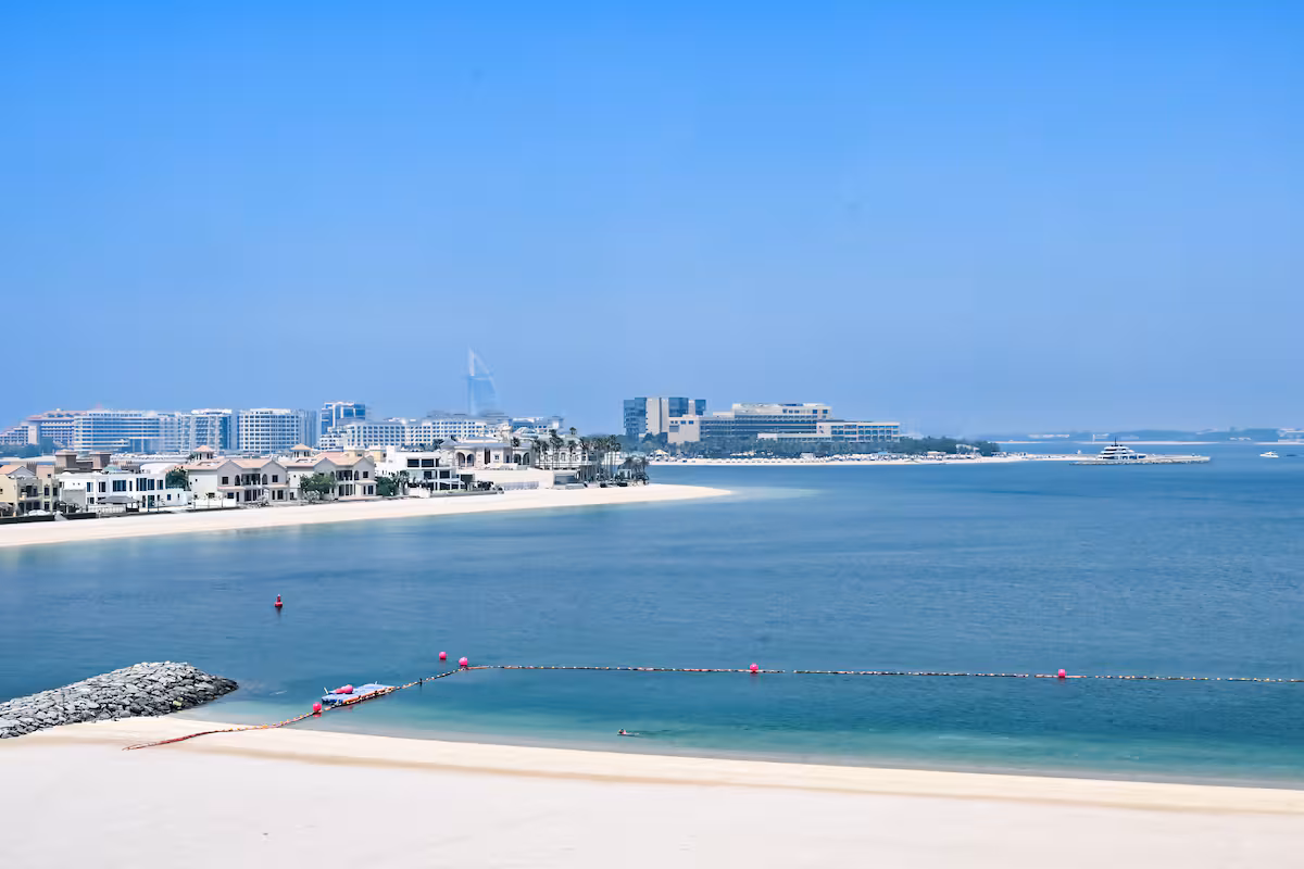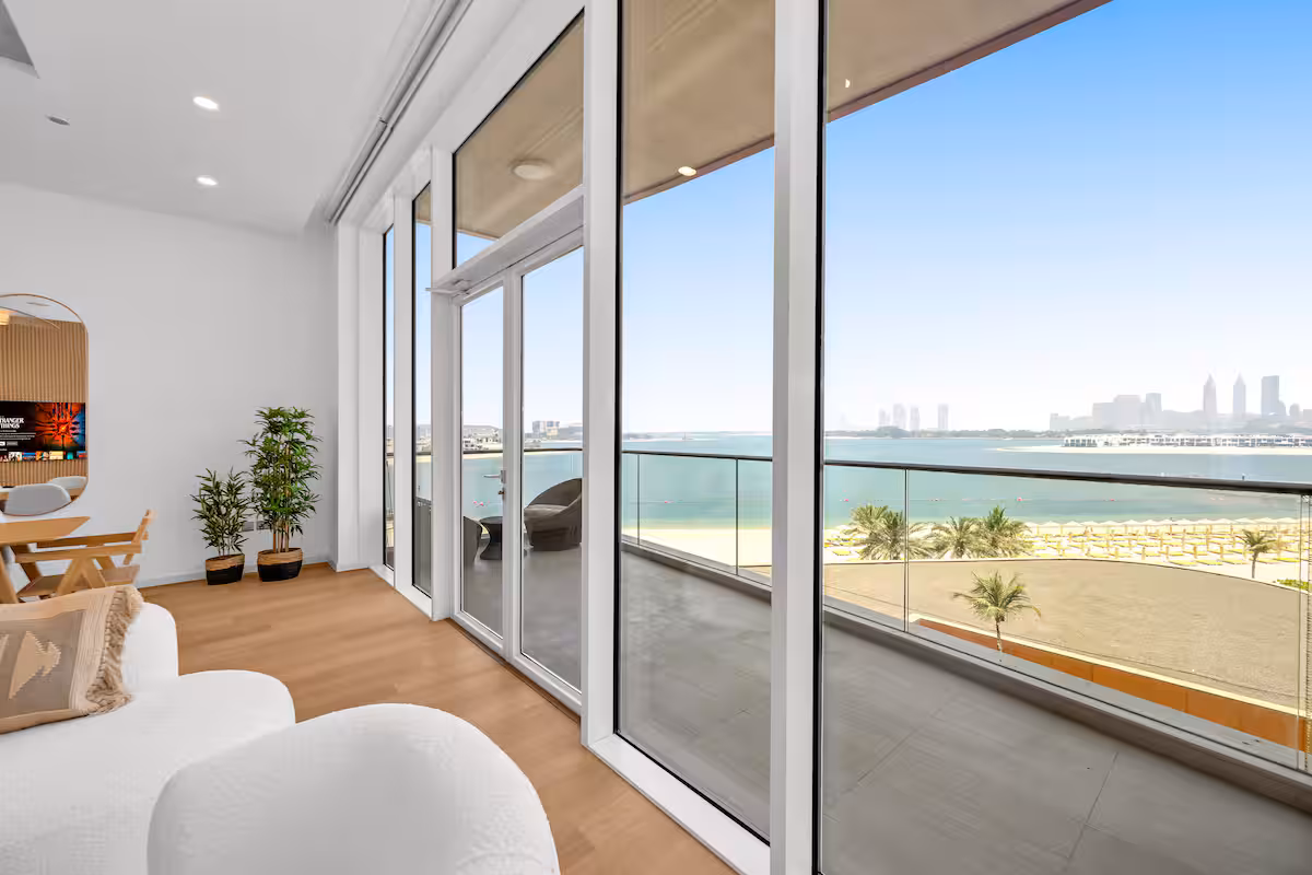 Guests have access to a private beach, pool, gym, and 24/7 security. The apartment also includes a washer/dryer for ultimate convenience. Experience high-end living in one of Dubai's most prestigious locations, just minutes from iconic landmarks like Burj Al Arab and Atlantis.